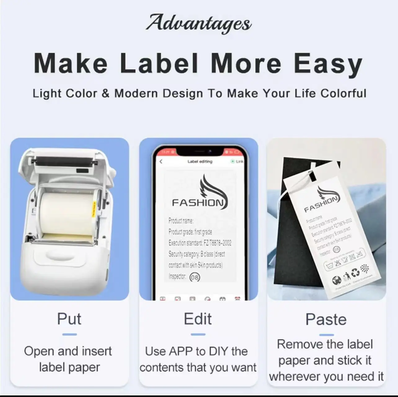 Cette mini imprimante Bluetooth vous permet d’imprimer facilement vos étiquettes, QR codes, notes et petits motifs depuis votre smartphone – sans encre, grâce à la technologie thermique.